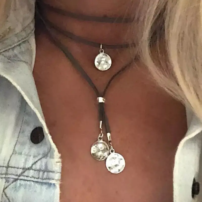 This necklace is a choker and necklace with metal accents. Go well with our vintage, bohemian or retro earrings.