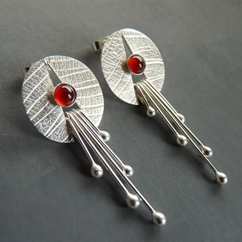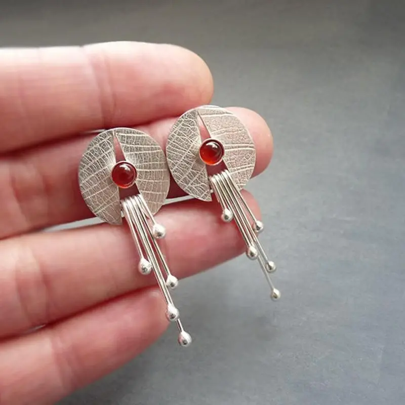 This set of stud earrings are silver with red stone. Lightweight with bright silver color.