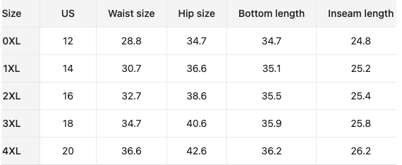 | Size | 1XL (14), 2XL (16), 3XL (18), 4XL (20) |